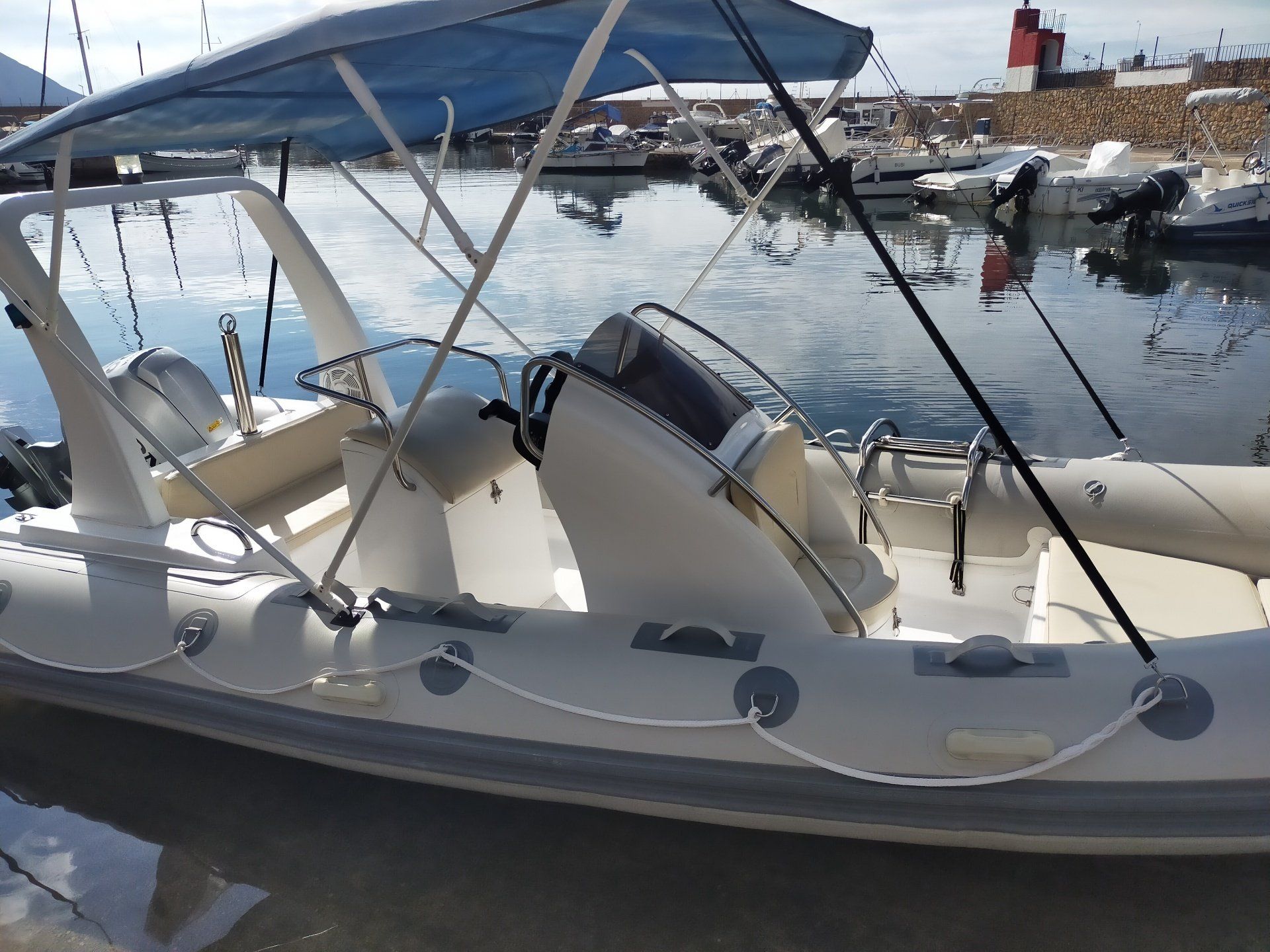 Excelente embarcación neumática semirrígida en alquiler Ch. Boats 580 Sea Trip está equipada con motor 100cv, ideal para paseos por la costa y la práctica de actividades como el snorkel, exploración de calas, ski, donuts, etc. el puerto base está situado en el Parque Natural de Sierra Helada, ecosistema protegido y hábitat de familias de delfines. Lancha neumática de alquiler con Licencia de Navegación (titulín) o superior. Con capacidad para 8 personas y ubicado en la Costa Blanca en el puerto de Porto Senso, Altea (Alicante).